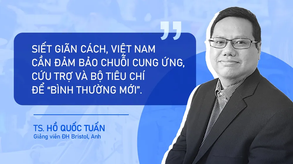 Trả lời Pháp Luật TP.HCM, TS. Hồ Quốc Tuấn, Giảng viên ĐH Bristol (Anh) nhận định: Việc giãn cách tối đa để đảm bảo giảm F0 và tử vong trong giai đoạn vừa qua là hợp lý, nhất là trong bối cảnh tỷ lệ tiêm vaccine còn thấp. Tuy nhiên, Việt Nam cần thúc đẩy đồng bộ nhiều giải pháp để bổ trợ chính sách giãn cách, đảm bảo chiến lược chống dịch sớm đạt thành quả tích cực.