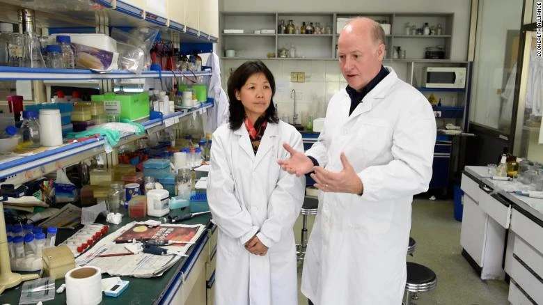 Tiến sĩ Thạch Chính Lệ đưa chuyên gia Peter Daszak đi tham quan phòng thí nghiệm vào năm 2014. Ảnh: EcoHealth Alliance/CNN