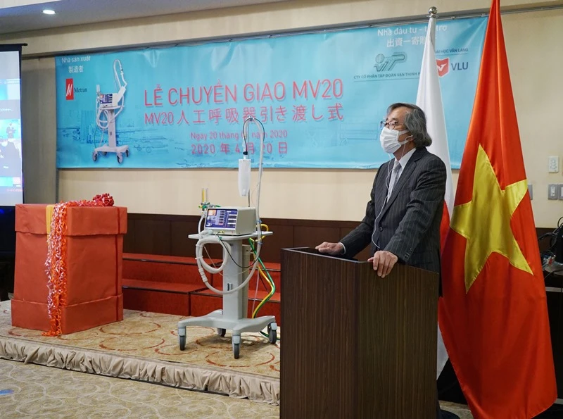 Thông tin từ Trường ĐH Văn Lang cho biết trong chiều 20-4, tại Nhật Bản, ông Vũ Hồng Nam - Đại sứ đặc mệnh toàn quyền Việt Nam tại Nhật Bản đã đón nhận hai máy thở Eliciae MV20 đầu tiên hỗ trợ Việt Nam trong điều trị COVID-19.