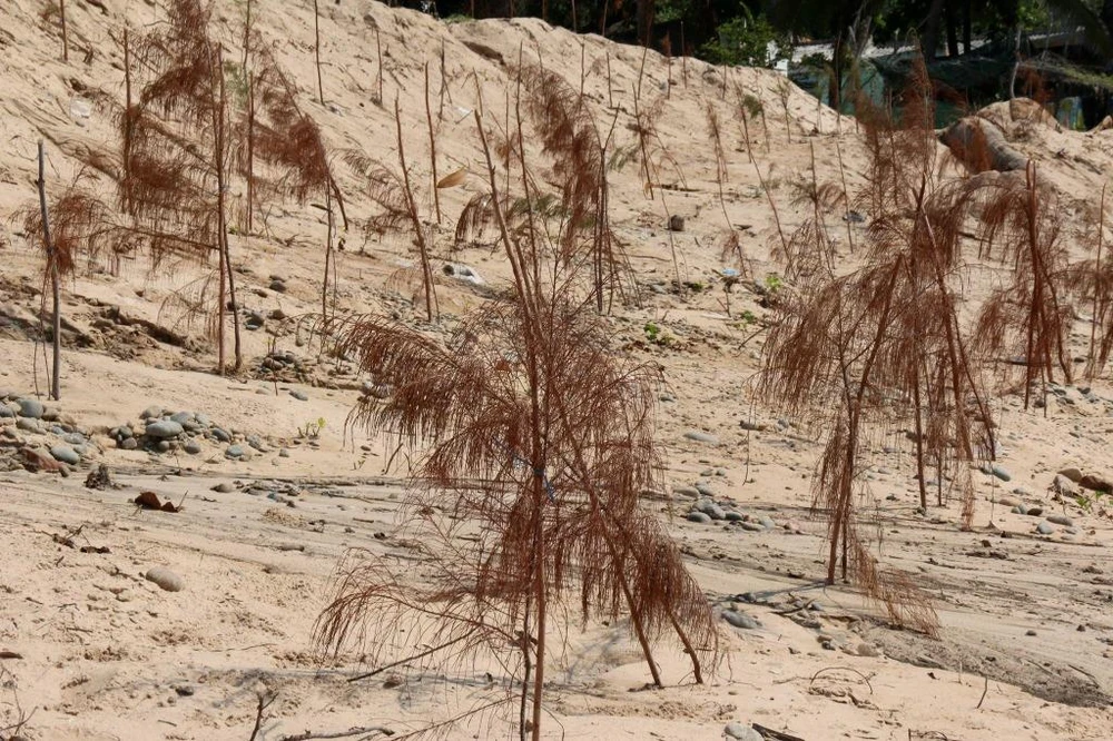 Phi lao trồng để khắc phục dù được tưới nước nhưng đã chết gần hết.