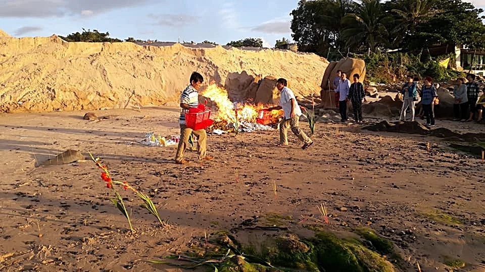 Từ chiều 27-1 đến nay, ba xe cơ giới do chính quyền huyện Tuy Phong điều động vẫn đang múc từng gàu đất cát lấp trên bãi đá bảy màu. Tuy nhiên, theo đánh giá của một chuyên gia về xây dựng, việc trả lại vẻ đẹp nguyên sơ ban đầu của bãi đá bảy màu đã bị lấp này là rất khó thực hiện.