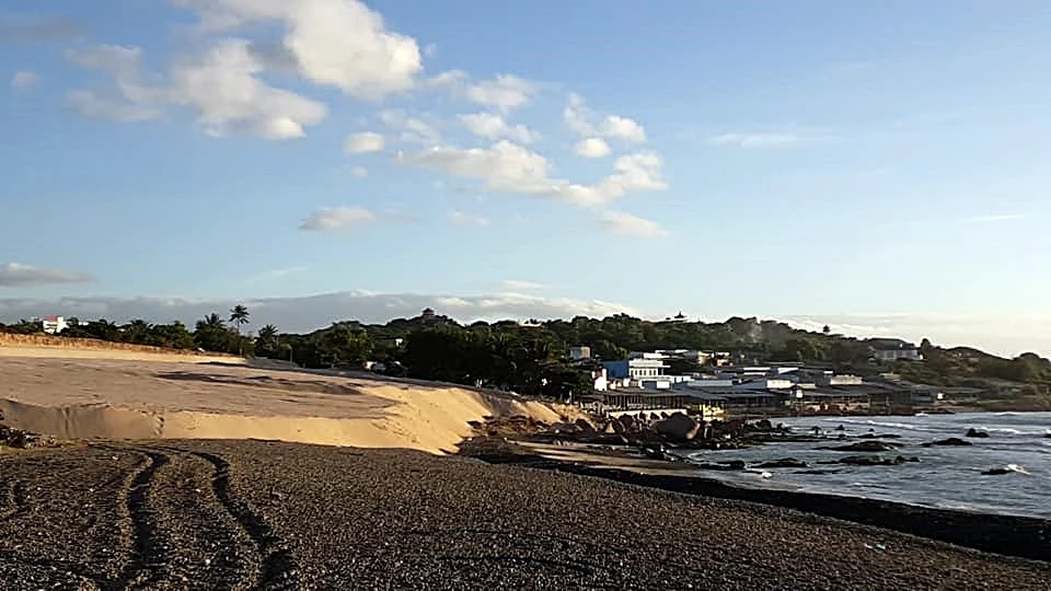 Tại hiện trường, hàng ngàn khối đất cát cao quá đầu người, không kè chắn và với độ dốc lớn có thể tiếp tục đổ ập, vùi lấp thêm bãi đá bảy màu bất cứ lúc nào.