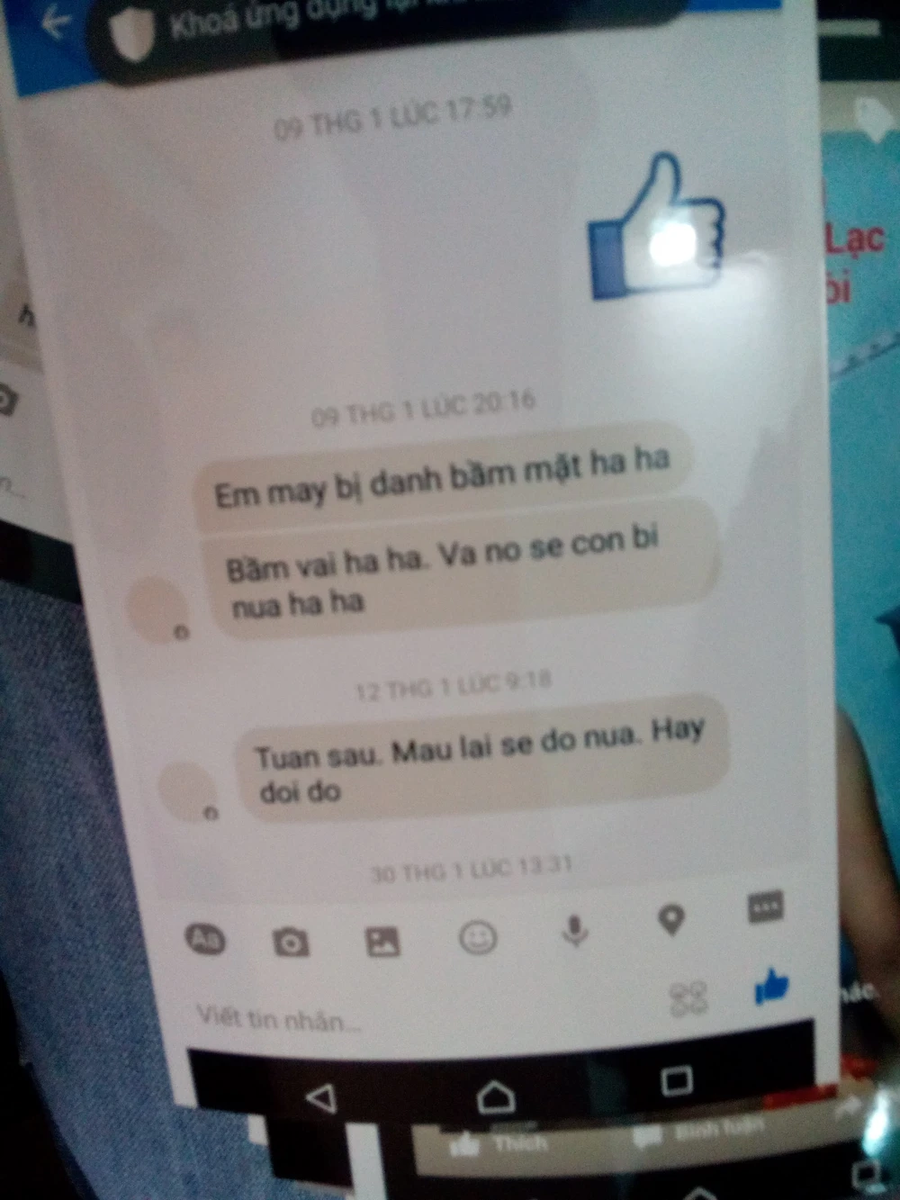 Tin nhắn đe dọa Q. gửi cho chị D. Ảnh: TIẾN DŨNG