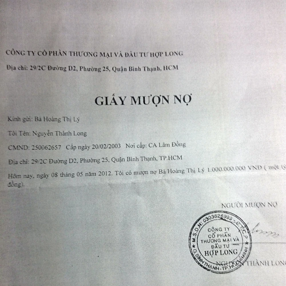 Các chứng từ ông Long mượn nợ đã được nộp cho cơ quan điều tra