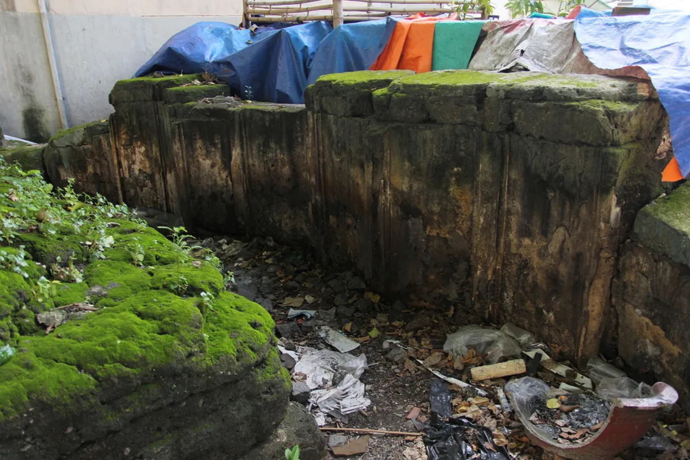 Một đoạn bờ thành phía sau mộ bị xô lệch, nứt nẻ.