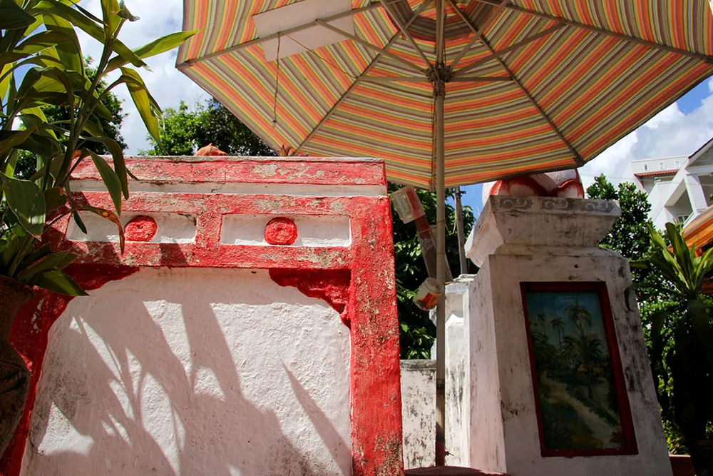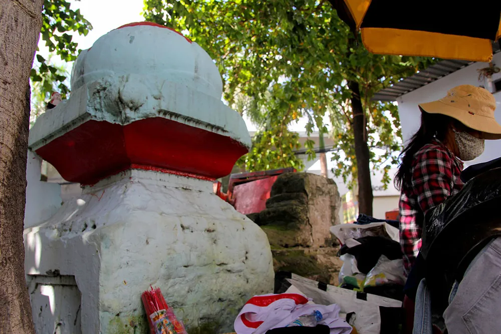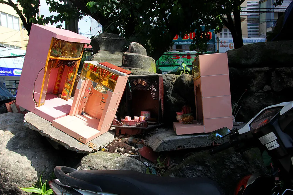 Các bàn thờ ông Địa của người dân bỏ quanh khu mộ.