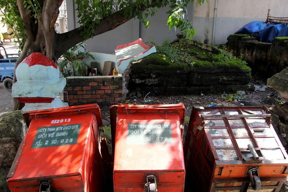 Xung quanh khu mộ là nơi tập kết các thùng rác và vật dụng người dân bỏ đi.