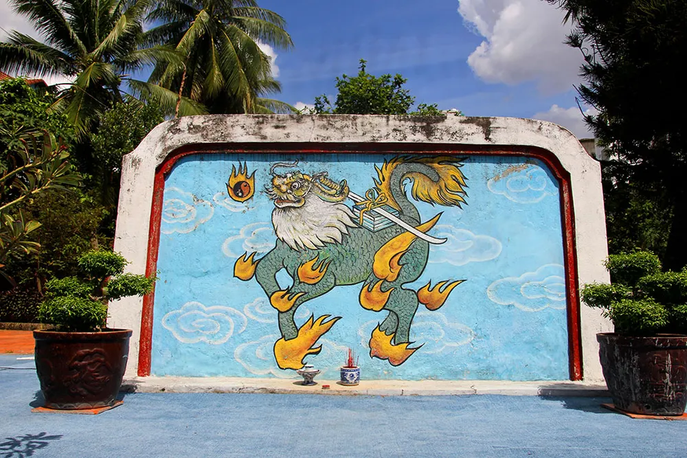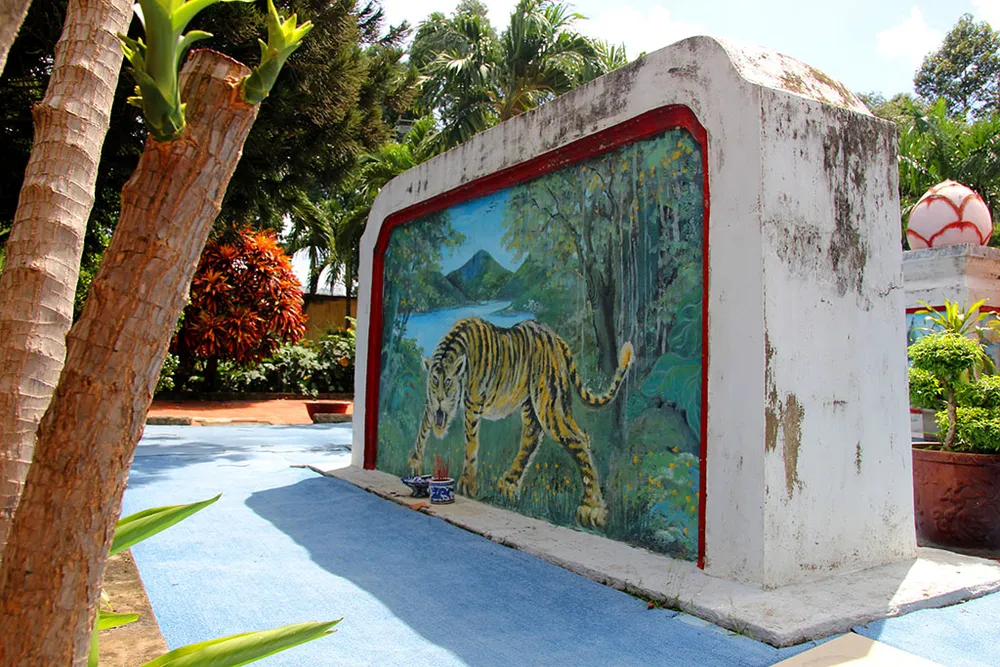 Mặt trước bức bình phong tiền vẽ hình con hổ.