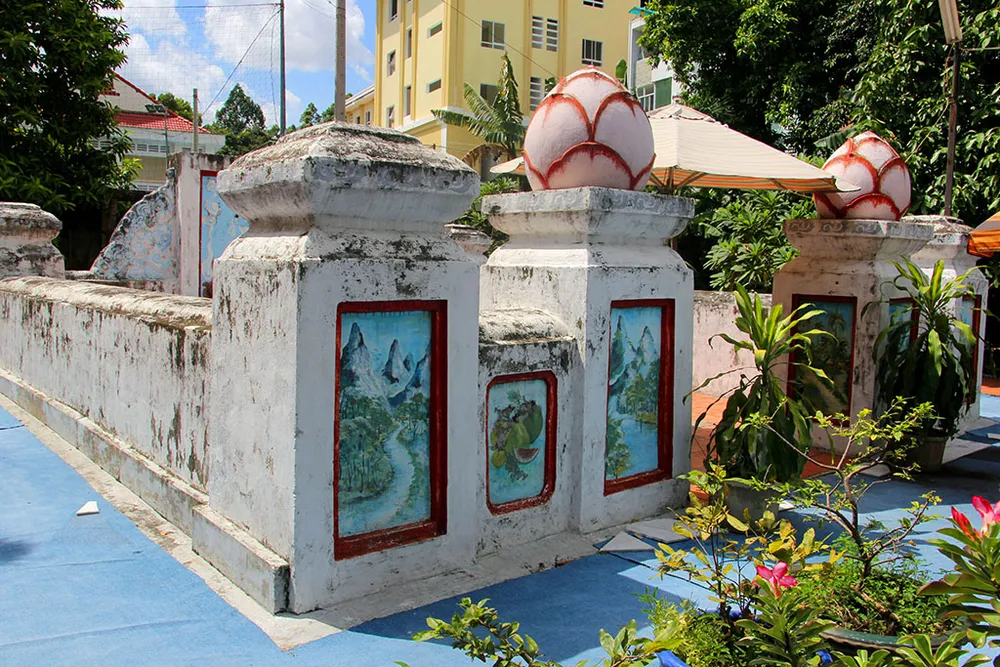 Sau bình phong tiền là cửa lăng rộng hơn 2 m, hai bên có trụ biểu, trên đầu mỗi trụ có chạm búp sen lớn nên chiều cao mỗi trụ lên đến 2,5 m.