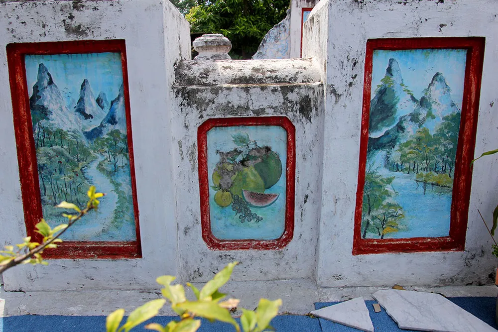 Hai bên cổng vào mộ có những ô được vẽ hình phong cảnh.