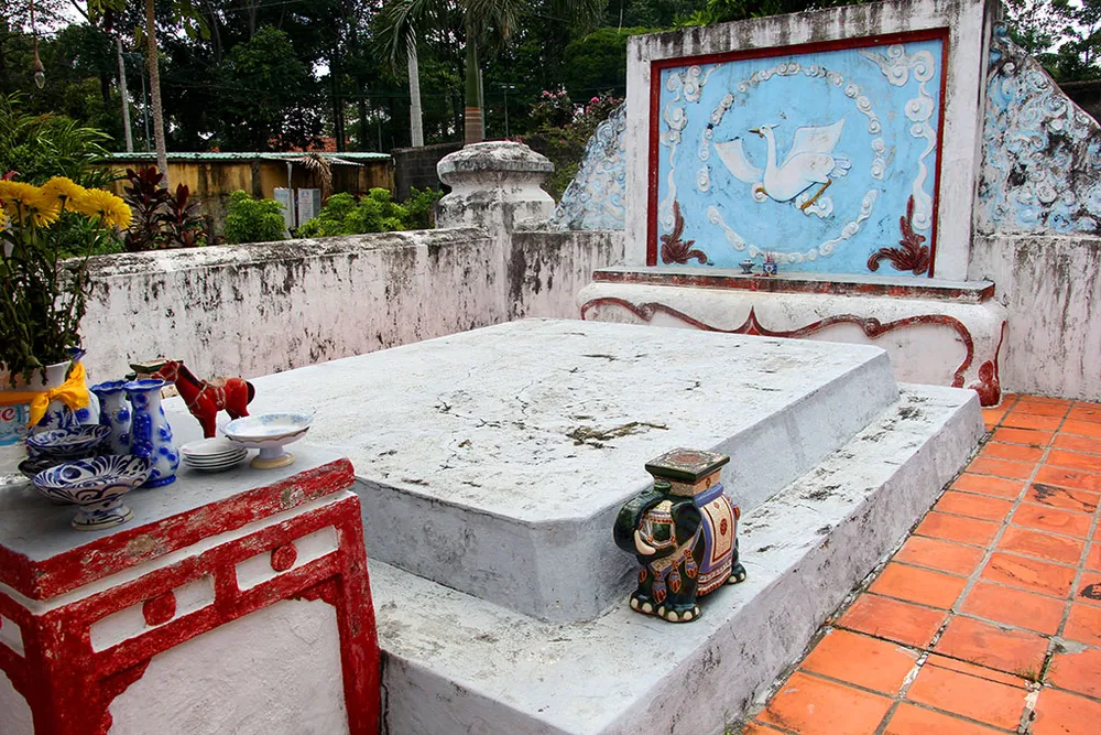 Khu mộ nằm được bao quanh bởi cây xanh, thoáng mát.
