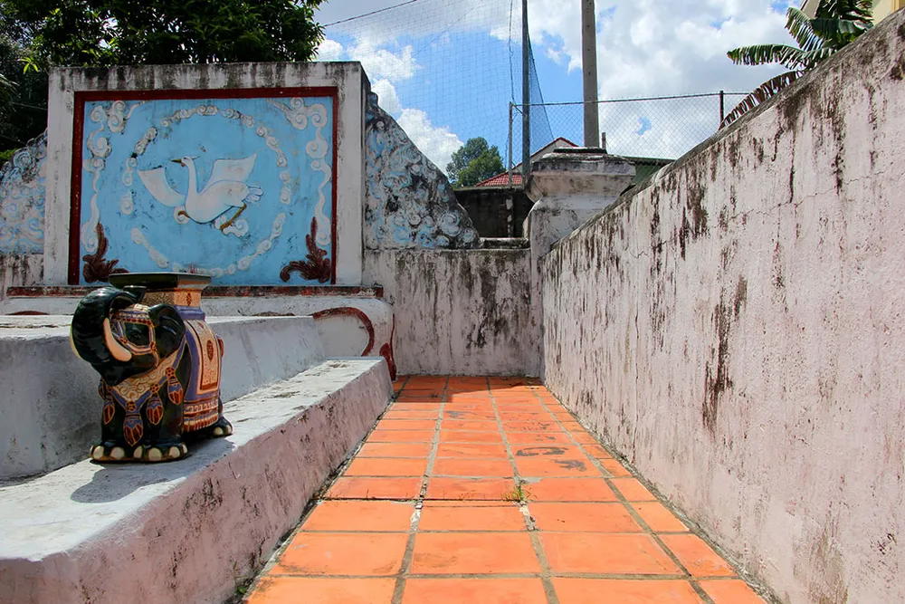 Từ cổng vào lăng mộ Võ Tánh có khu thờ tự trang nghiêm với khoảng sân rộng, yên tĩnh và thoáng mát.