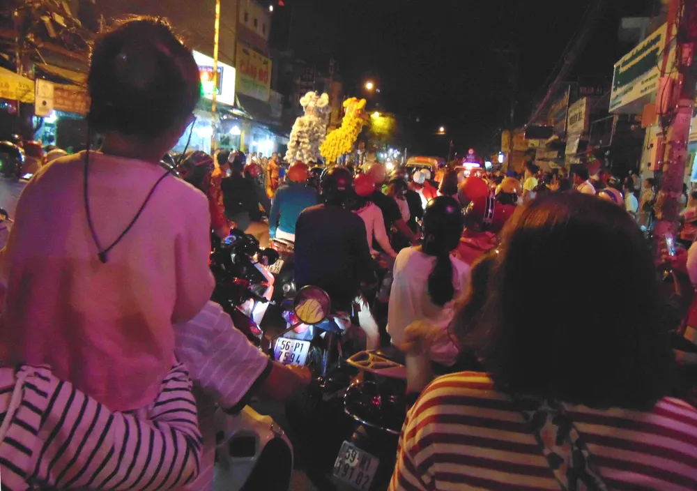 Chở vợ con trên chiếc xe gắn máy láng coóng, anh Hùng cười nói: “Kẹt xe kiểu này làm trễ giờ viếng chùa của cả nhà. Dù có hơi bực mình nhưng cứ vui thôi để cả năm được may mắn. Sáng mùng Một Tết mà càu nhàu thì chuyện không vui sẽ lẽo đẽo suốt năm đó.”