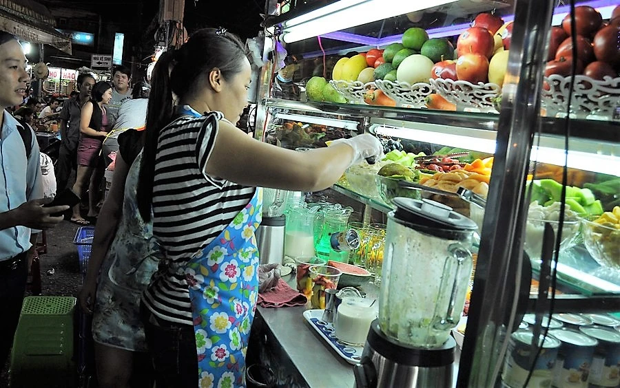 Chị Trang cho biết: “Trước đây tôi bán nước trên xe đẩy tay nên chỗ nào trống là dừng lại bán chứ không cố định được một chỗ. Vậy mà thỉnh thoảng còn bị lập biên bản xử phạt đến “ê mình” nhưng vào đây thì khác hẳn. Tôi được ban quản lý chợ hỗ trợ, bố trí một mặt bằng làm nơi buôn bán. Anh thấy đó, quầy kệ, bàn ghế của tiệm nước đã tươm tất hơn, khách có chỗ ngồi lịch sự mà khi bán ở vỉa hè không có được. Bản thân tôi cũng được tập huấn buôn bán sao cho đảm bảo vệ sinh an toàn thực phẩm. Bán nước trái cây đâu có lời bao nhiêu nhưng tôi bán được và đủ lo cho cuộc sống của năm người trong gia đình”.