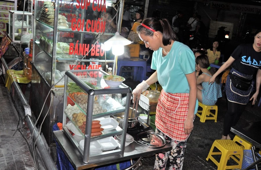 “Họ bán đủ ngành nghề ăn uống như bún bò, gỏi cuốn, phở, miến… từ khoảng 18 giờ 30 cho đến khuya. Chúng tôi có thu phí “thuê mặt bằng” với mức tượng trưng và thu phí vệ sinh, tiền điện, nước theo đúng quy định. Nhưng vào đây, họ phải theo các quy định nghiêm ngặt về an toàn vệ sinh thực phẩm, việc khám sức khỏe định kỳ. Bước đầu cho thấy việc buôn bán rất ngăn nắp, trật tự” - ông Sơn thông tin thêm.