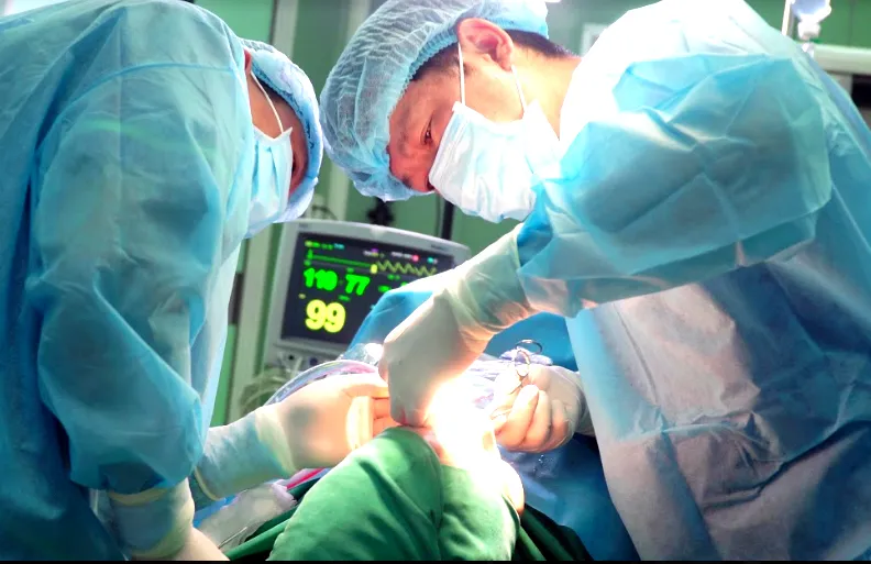 Tại đây, các bác sĩ nhanh chóng rút sụn nhân tạo, bơm rửa sạch toàn bộ ổ dịch, cắt lọc và loại bỏ mô hoại tử, giải phẫu ổ áp xe ở mông.