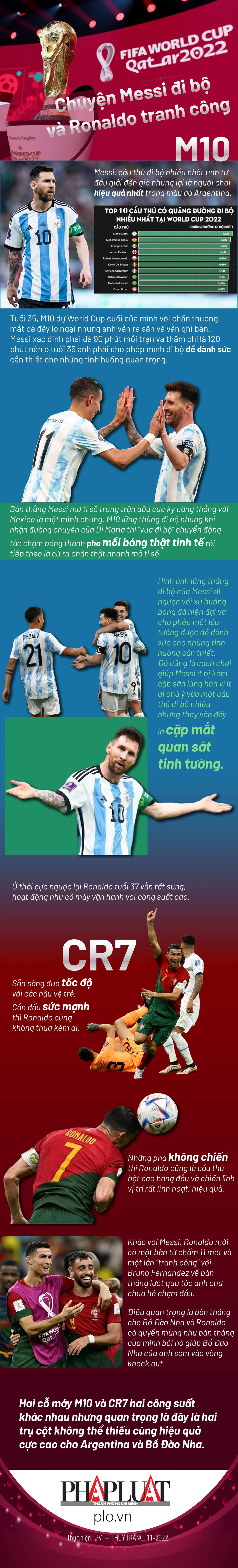 (PLO)- Messi và Ronaldo luôn tạo sự chú ý lớn từ truyền thông. Nếu Messi lững thững đi bộ nhiều trên sân nhưng chỉ cần một khoảnh khắc loé sáng và M10 đã có bàn thắng quan trọng trước Mexico thì Ronaldo lúc nào cũng hừng hực chạy nhiều, nhảy nhiều và sẵn sàng “tranh công” bàn thắng không thuộc về mình.