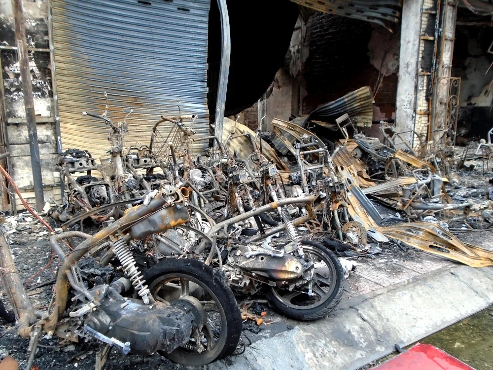 Nhiều xe máy đã bị cháy rụi
