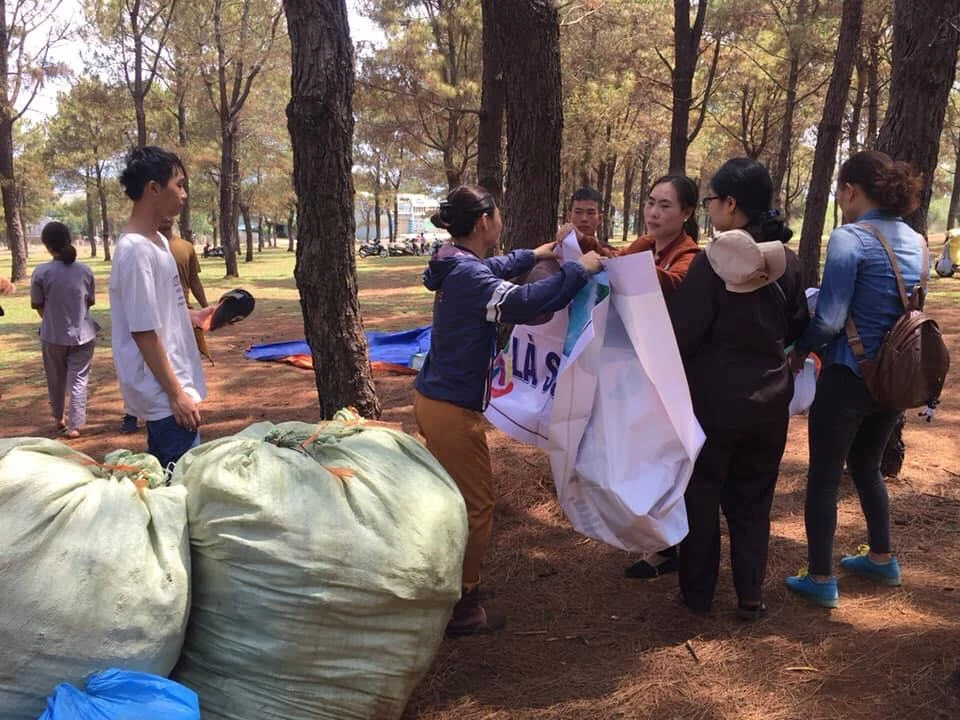 Tất cả đều rất vui vẻ chuẩn bị nhập cuộc... dọn rác.