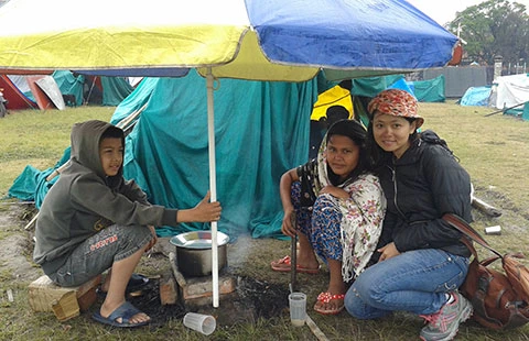 Nepal rất nghèo. Trận động đất càng đẩy người Nepal vào trăm bề gian khổ. Không đếm xuể có bao nhiêu gia đình lâm vào cảnh màn trời chiếu đất bởi nhà đã sập đổ tan hoang. Không có đủ lều cho từng nhà, nhiều gia đình phải chen chúc cùng nhau ngày này qua ngày nọ. Nước sạch khan hiếm, lương thực chẳng có họ lây lất sống. Vậy mà ở các khu gọi là vô gia cư ấy, ai cũng ngạc nhiên khi tôi hỏi ở đây có an ninh không, có trộm cắp, giành giật không. Chứng kiến cảnh người ta trật tự nhận đồ tiếp tế, xếp hàng hứng nước, nhà nào lấy xong rồi thì đem vào giúp những người ở xa hơn tôi mới thấy câu hỏi của mình lạc lõng. Họ nghèo xác nghèo xơ nhưng sẵn lòng cưu mang người khác. Anh chàng Tây ba lô nghèo ở tại một khách sạn bị sập, anh vào tá túc túp lều một gia đình chưa từng quen biết. Họ nấu cho anh ăn, chia nước cho anh uống, cho anh ở cùng cái lều nhỏ xíu, chật chội của mình mà không tính toán, đòi hỏi một điều gì.