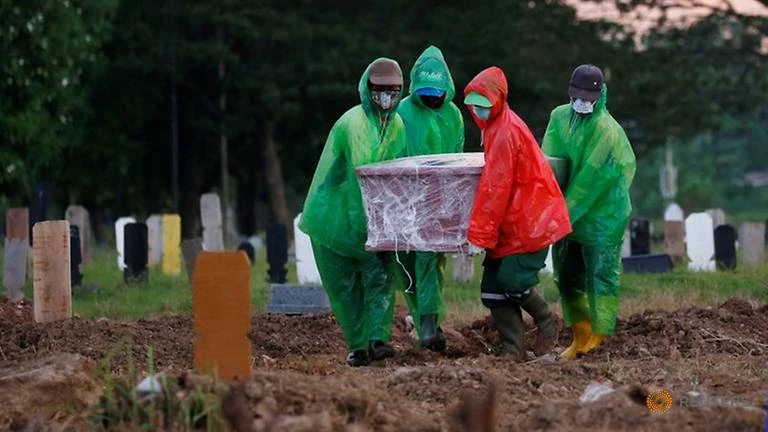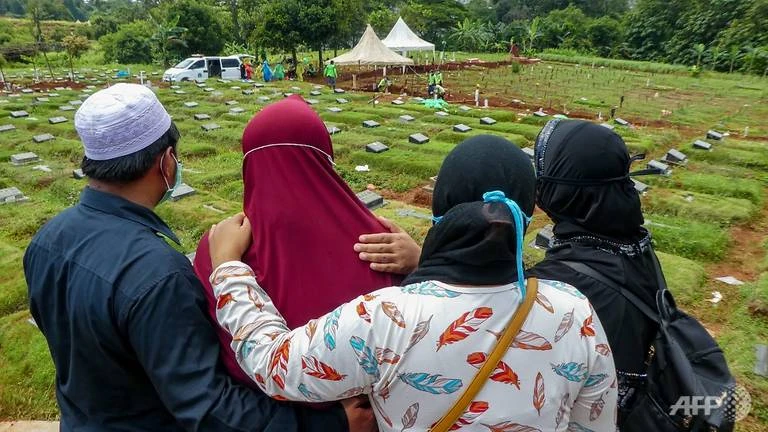 Jakarta là nơi có nhiều người chết nhất Indonesia và những người đào huyệt đang làm việc liên tục tại nghĩa trang Pondok Rangon ở thủ đô. Ảnh: CNA đưa lại từ người đào huyệt tên Minar.