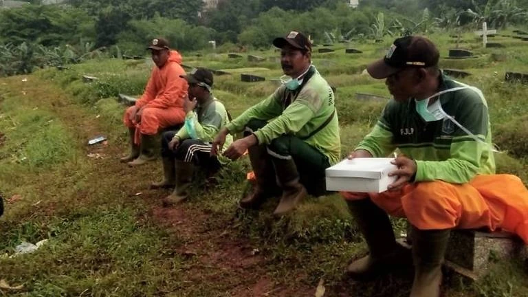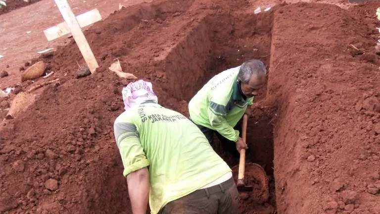 Có khoảng 80 người đào huyệt ở nghĩa trang Pondok Rangon. Lương của họ do chính quyền Jakarta trả, mức 3,6 triệu rupiah/tháng (tương đương 5,4 triệu đồng).