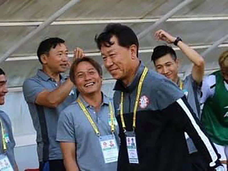 Thua 2-5 nhưng HLV Chung Hae-seong vẫn cười khó hiểu. Ảnh: TRÂM ANH