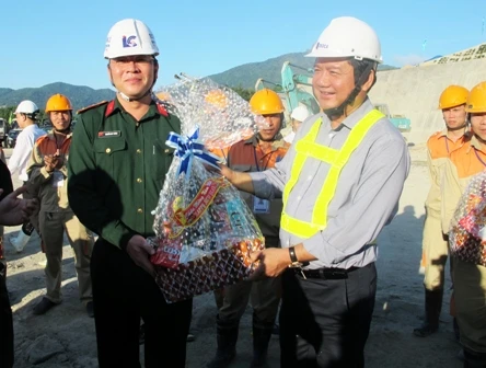 Nhân dịp này, Bộ trưởng Đinh La Thăng đã chúc Tết cán bộ, kỹ sư, công nhân đang thi công tại dự án hầm Đèo Cả, tặng quà các đơn vị thi công.
