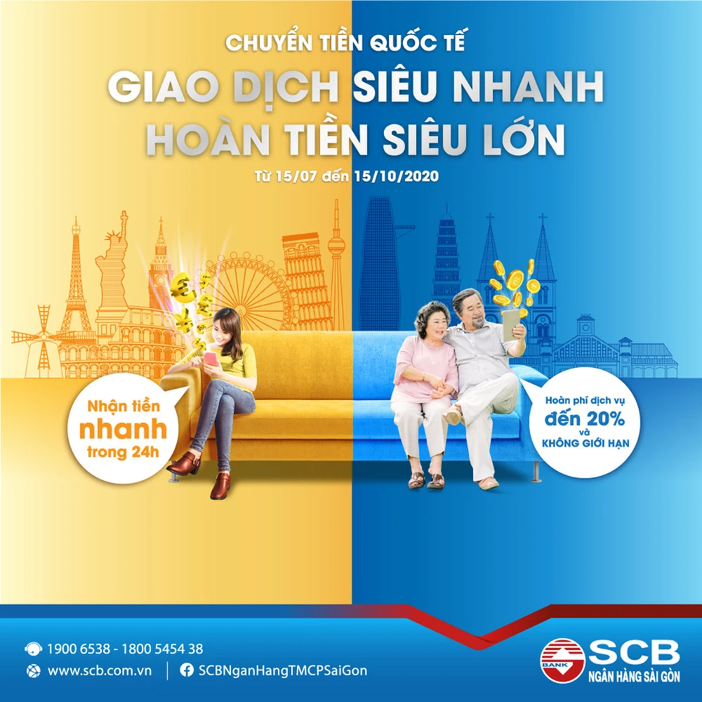 Cụ thể, khách hàng cá nhân sử dụng dịch vụ chuyển tiền thanh toán quốc tế tại SCB sẽ được hoàn phí vào tài khoản thanh toán từ 10%-20% cho các giao dịch chuyển tiền ra nước ngoài có số tiền thu phí từ 1.000.000 đến trên 20 triệu đồng.