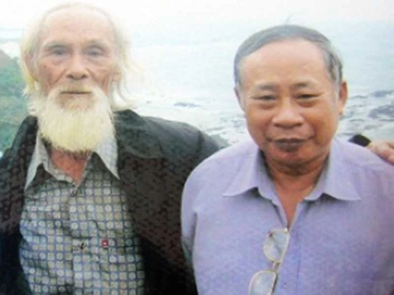 Nhà khảo cổ Đỗ Đình Truật (trái) và ông Nguyễn Thiện Đức trong chuyến đi tìm mộ Hồ Quý Ly. Ảnh do gia đình cung cấp