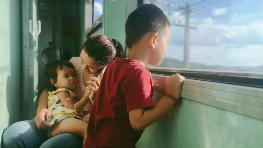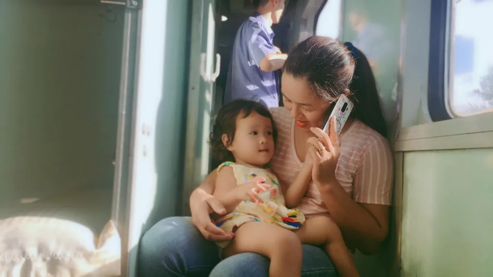 Chị bị say tàu xe nên ăn có bát mì tôm mà nôn thốc nôn tháo, lại còn phải chăm cả hai đứa nhỏ đều hiếu động. Vậy mà suốt từ lúc lên tàu đến khi xuống ga Đà Nẵng, chưa một lần thấy chị nặng lời với hai đứa trẻ. Nhớ đâu tầm 11 giờ đêm tàu tới Đà Nẵng, bé gái ngái ngủ ôm chặt mẹ. Người đồng nghiệp bạn anh bế bé trai và xách ba lô giùm chị.