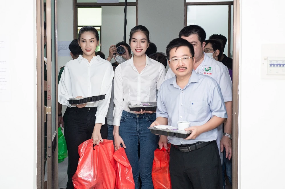 Tốp 3 Hoa hậu Việt Nam 2020 gồm: Hoa hậu Đỗ Thị Hà, Á hậu 1 Phạm Ngọc Phương Anh, Á hậu Nguyễn Lê Ngọc Thảo cùng Người đẹp nhân ái Huỳnh Nguyễn Mai Phương đã có chuyến từ thiện tại Bệnh viện Quân y 175.