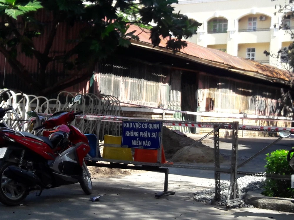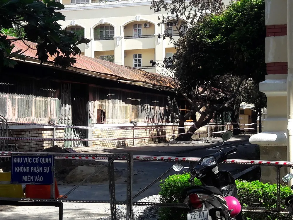 Khu vực cháy đang được rào chắn. Ảnh: HÀ PHƯỢNG