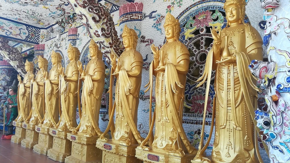 Các tượng Phật bên ngoài công trình điện thờ 324 tượng Quán Thế Âm Bồ Tát.