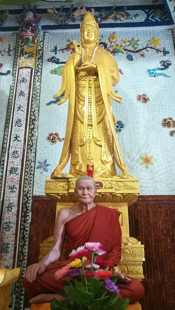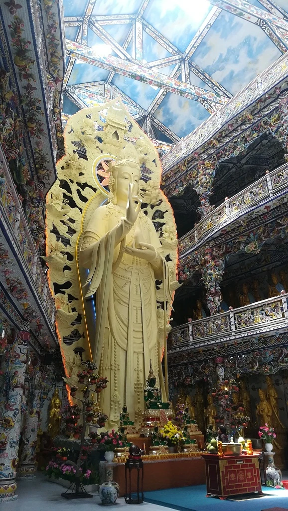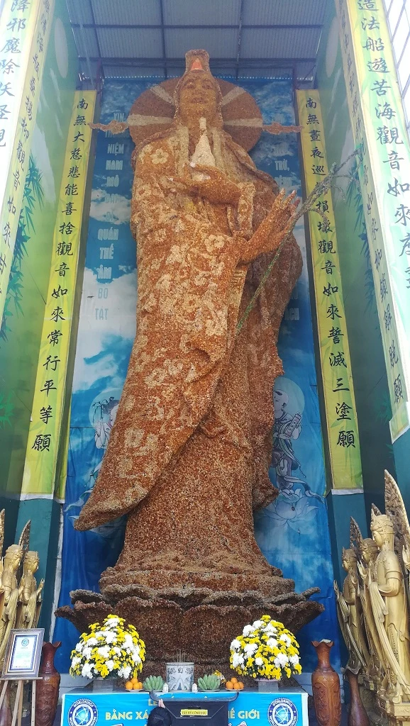 Tượng Phật bên trong công trình điện thờ 324 tượng Quán Thế Âm Bồ Tát thu hút nhiều người đến tham quan. Tượng làm bằng bê tông cốt thép, cao 17 m.