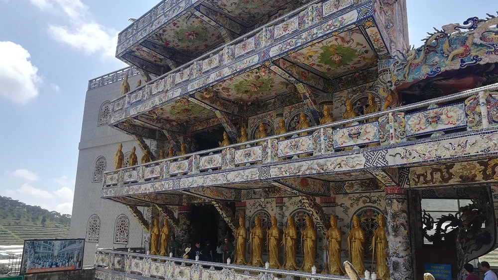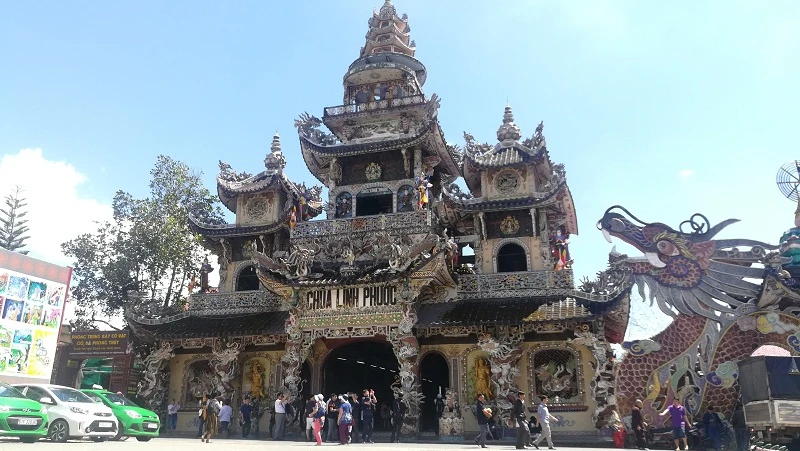 Chùa “ve chai” nằm cách trung tâm TP Đà Lạt 8 km theo quốc lộ 20. Vài năm trở lại đây, ngôi chùa trở thành điểm đến tham quan của đông đảo du khách trong và ngoài nước. Sở dĩ chùa còn có tên gọi là “ve chai” vì được khảm bằng hàng triệu mảnh vỏ chai, chén bát vỡ, sành sứ đủ màu sắc. Sau hơn 20 năm trùng tu với sự kỳ công, chùa mang nét đẹp độc đáo và “sở hữu” nhiều kỷ lục trong nước.