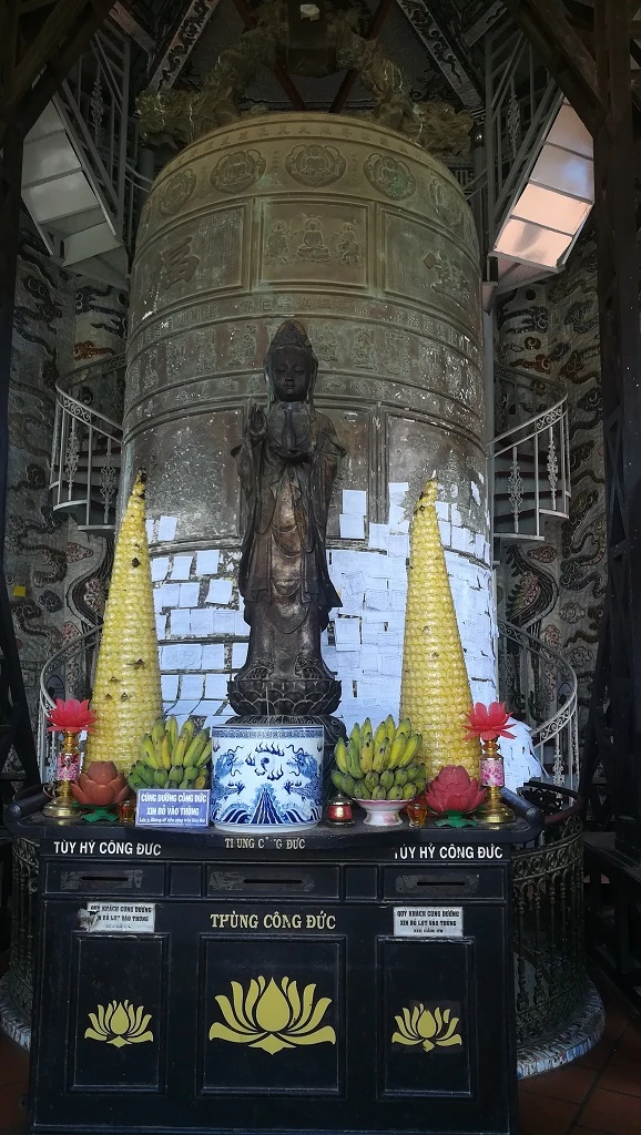 Bàn thờ Phật phía trước chuông.