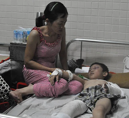 Bệnh viện đã tiến hành kiểm tra CT đầu; chụp X-quang ngực, cánh tay, cẳng chân; siêu âm bụng. Các bác sỹ Bệnh viện Chợ Rẫy cho biết, cháu Hiếu bị gãy kín 1/3 xương cẳng chân phải, gãy 2 lồi cầu xương cánh tay trái.