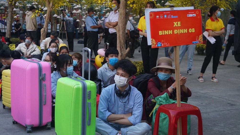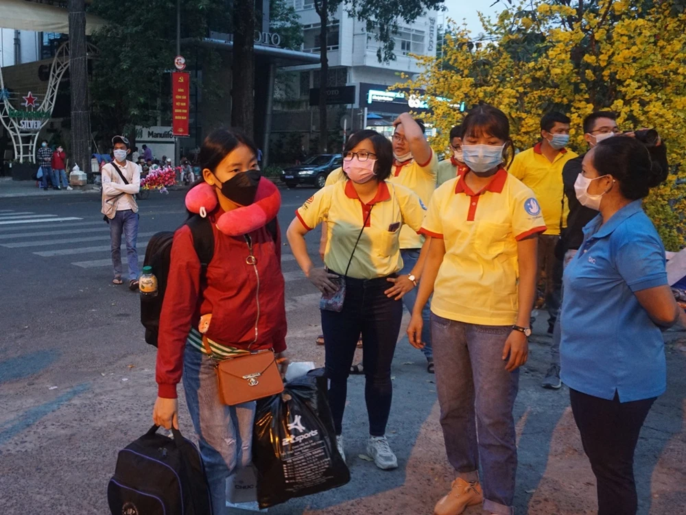 Bày tỏ niềm xúc động khi nhận được tấm vé từ chương trình, cô Nguyễn Thị Thiêng, quê Bình Định nói: "Tôi biết tới chương trình qua đứa cháu giới thiệu. Năm nay dịch bệnh tùm lum, công việc buôn bán bấp bênh. Tôi đang tính không biết sẽ về quê bằng cách nào. May nhờ có chương trình, tôi lại được về đoàn tụ với gia đình. Tôi có mua một ít quà cho mấy đứa ở nhà".
