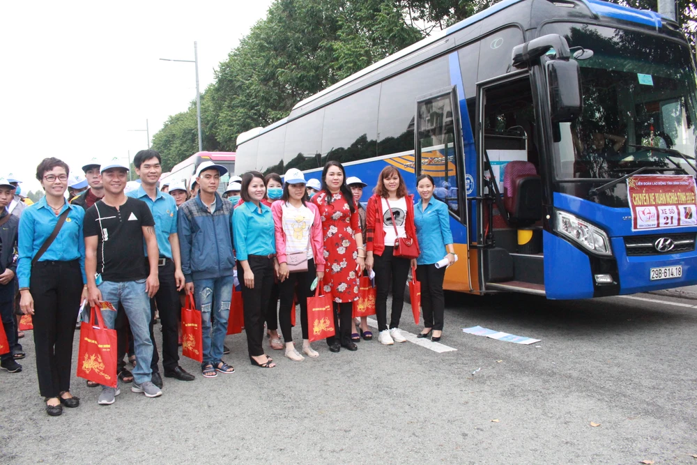 Bà Trương Thị Bích Hạnh, Chủ tịch Liên đoàn Lao động tỉnh Bình Dương cho biết, đến thời điểm hiện tại Liên đoàn lao động tỉnh, công đoàn cơ sở, các doanh nghiệp, công ty trên địa bàn tỉnh đã tổ chức tặng vé xe đưa các công nhân nghèo về quê đón tết cùng người thân.
