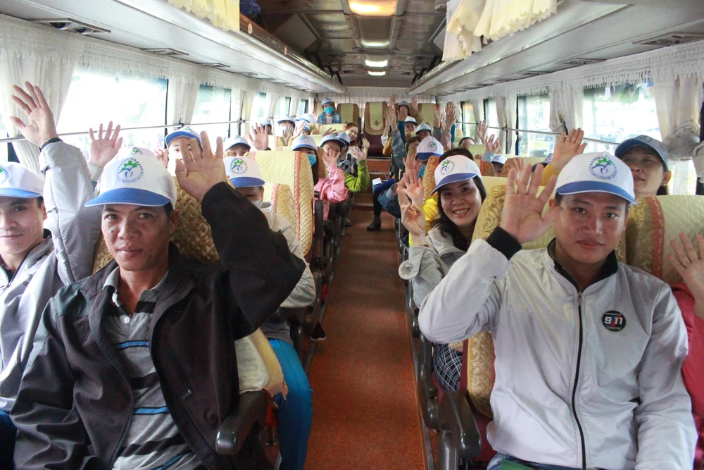 Chị Văn Thị Liễn, công nhân giày Đại Lộc (quê tại Quảng Trị) cùng chồng và một con nhỏ cũng về quê ăn tết trên những chuyến xe nghĩa tình mà Liên đoàn tỉnh Bình Dương tổ chức. Chị thật sự xúc động khi được những tình cảm quan tâm của lãnh đạo tỉnh, của Liên đoàn lao động dành dành cho gia đình.