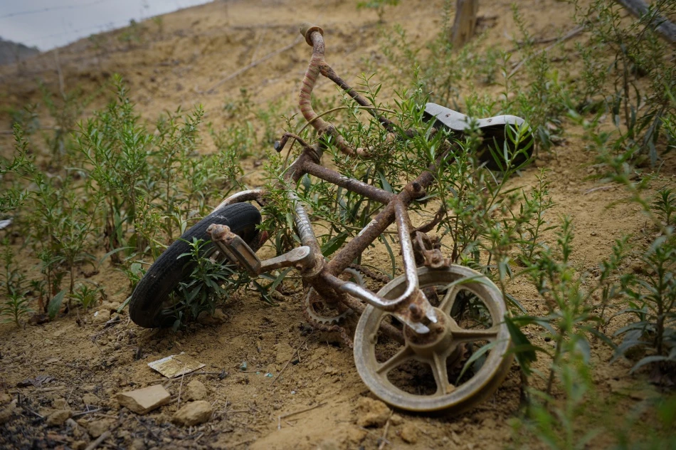 “Bức ảnh này tôi chụp khi lần đầu tiên đến thăm ngôi làng. Đây là chiếc xe đạp trẻ em, món đồ chơi duy nhất còn sót lại tại ngôi làng Ciénega để chứng minh rằng đã có trẻ con từng sống tại đây. Việc lắp đặt đường ống dẫn khí đã mang lại một ít hy vọng vì đã có nhiều người quay trở về làng để làm bảo vệ công trình. Song, tiếc thay công việc này chỉ là tạm thời, vì khi công trình hoàn tất, số người này đã bỏ làng và quay lại thành phố kiếm kế sinh nhai”.