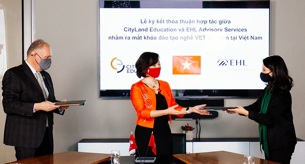 Tại TP.HCM, Cityland Education vừa ký kết thỏa thuận hợp tác với Dịch vụ Tư vấn EHL (là trường đào tạo ngành dịch vụ khách sạn tốt nhất thế giới ở Thụy Sĩ) để trở thành Đơn vị Giáo dục & Đào tạo nghề nghiệp (Vocational Education & Training (VET) Licensing) trong hệ thống trung tâm đào tạo đạt chuẩn của EHL.