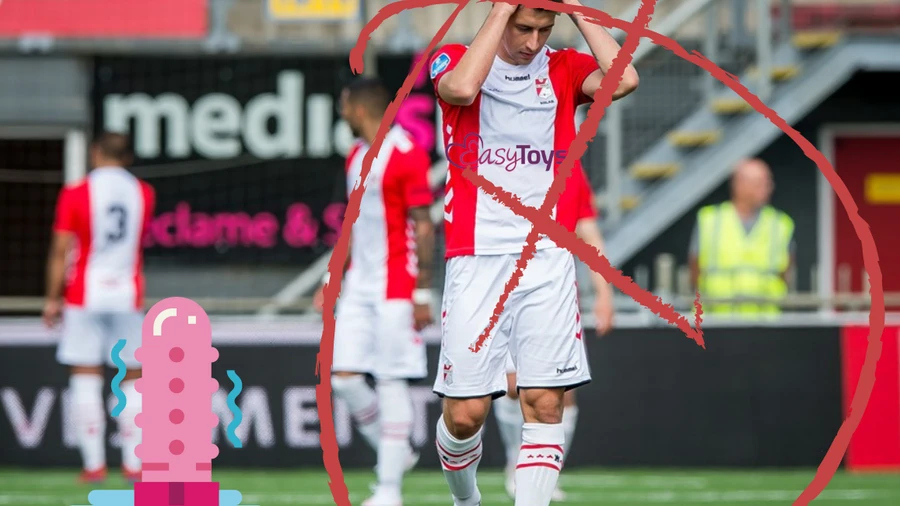 LĐBĐ Hà Lan đã “tuýt” còi và buộc CLB Emmen không được quảng cáo các sản phẩm thuộc “dụng cụ phòng the” của một công ty chuyên kinh doanh các mặt hàng này.
