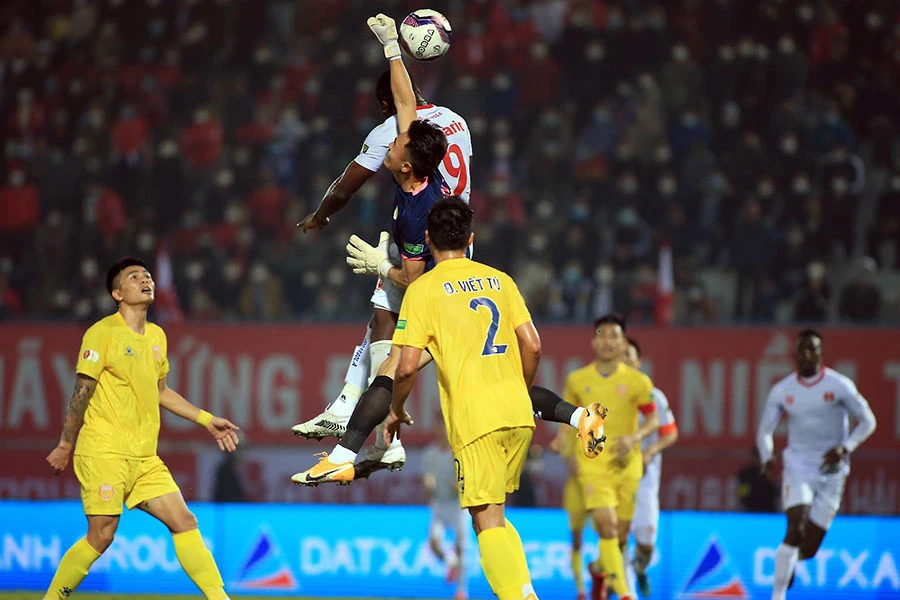 Hải Phòng sau hai vòng đấu lấy trọn 6 điểm trong khi Nam Định mới có 1 điểm lại hoãn vòng 3 vì đội khách Hà Nội không có thủ môn. Ảnh: ANH THỎA