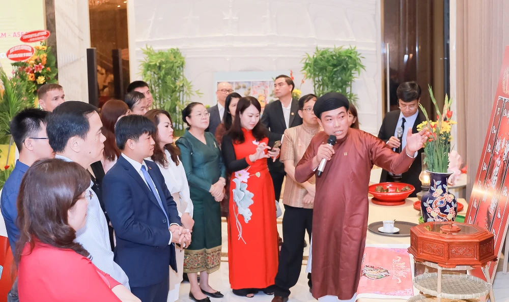 Diễn giả Hồ Nhựt Quang giới thiệu văn hóa Tết Việt bên lề kỷ niệm 12 năm thành lập Hội phát triển hợp tác kinh tế Việt Nam - ASEAN vào tháng 1-2021.
