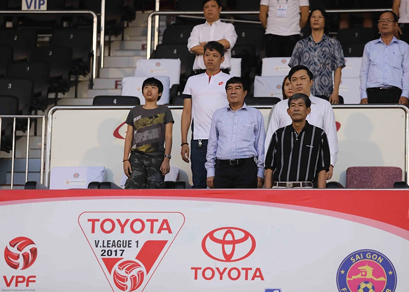 Phó chủ tịch VFF Nguyễn Xuân Gụ, cùng TGĐ VPF Cao Văn Chóng dự khán