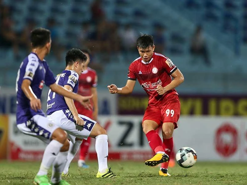 Cầu thủ TP.HCM (phải) sẽ gặp nhiều khó khăn hơn với đối thủ lớn Hà Nội ở chặng đường còn lại V-League. Ảnh: NGỌC DUNG