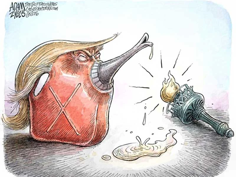 Mồm miệng ông Trump có thể gây hậu quả nghiêm trọng. Biếm họa của ADAM ZYGLIS (báo The Buffalo News)