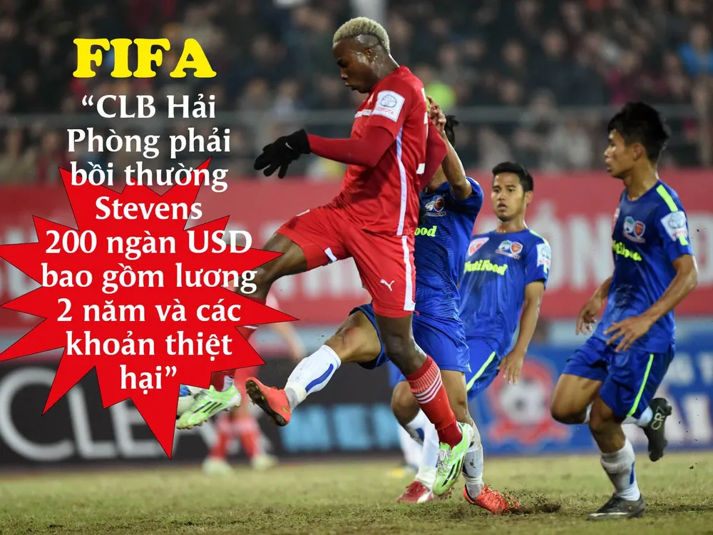 Tuần qua, FIFA ra thông báo gửi đến VFF và CLB Hải Phòng về phán quyết buộc CLB Hải Phòng phải bồi thường 200 ngàn USD (gần 5 tỉ đồng) cho cầu thủ Stevens người Jamaica, vì vi phạm hợp đồng lao động với cầu thủ này.